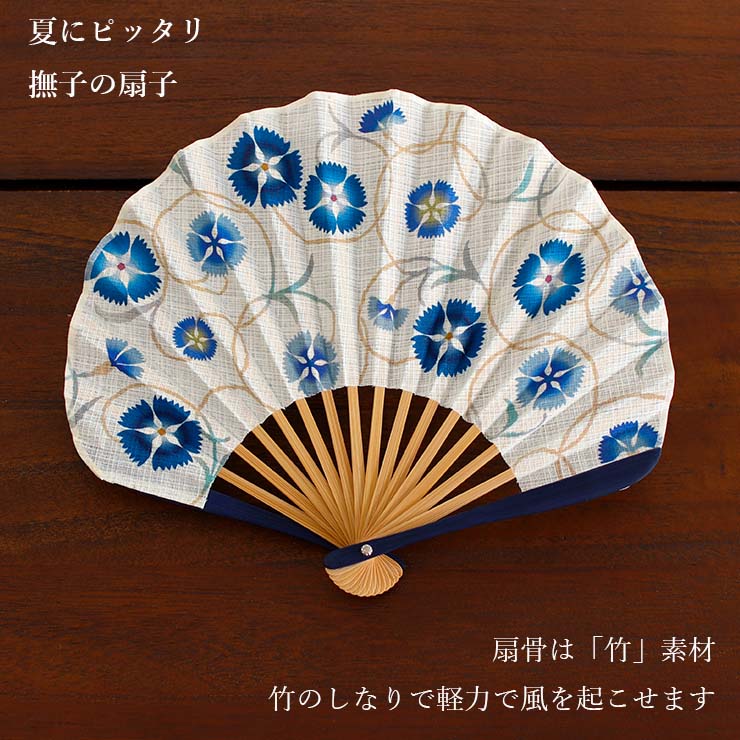 持ち運びに便利な扇袋つき!夏にぴったりな撫子の扇子です。
